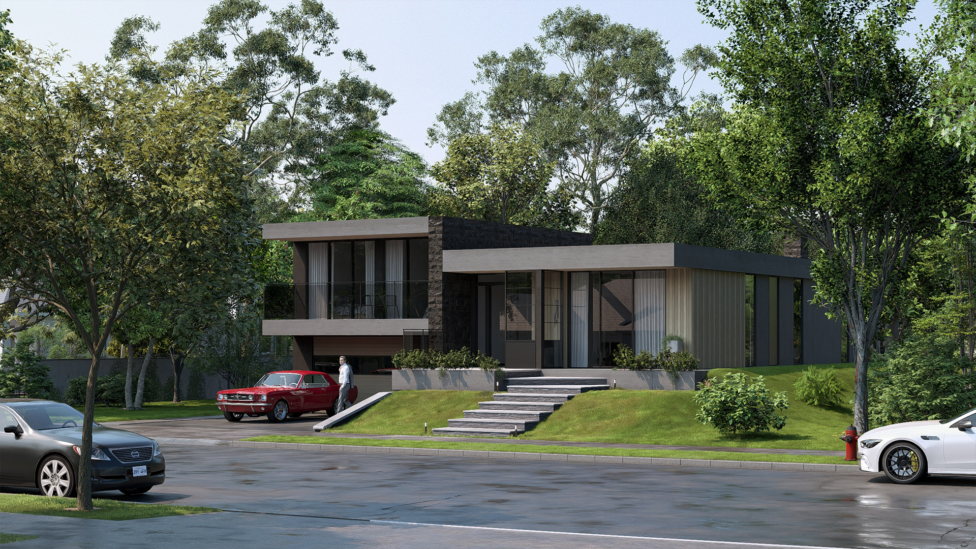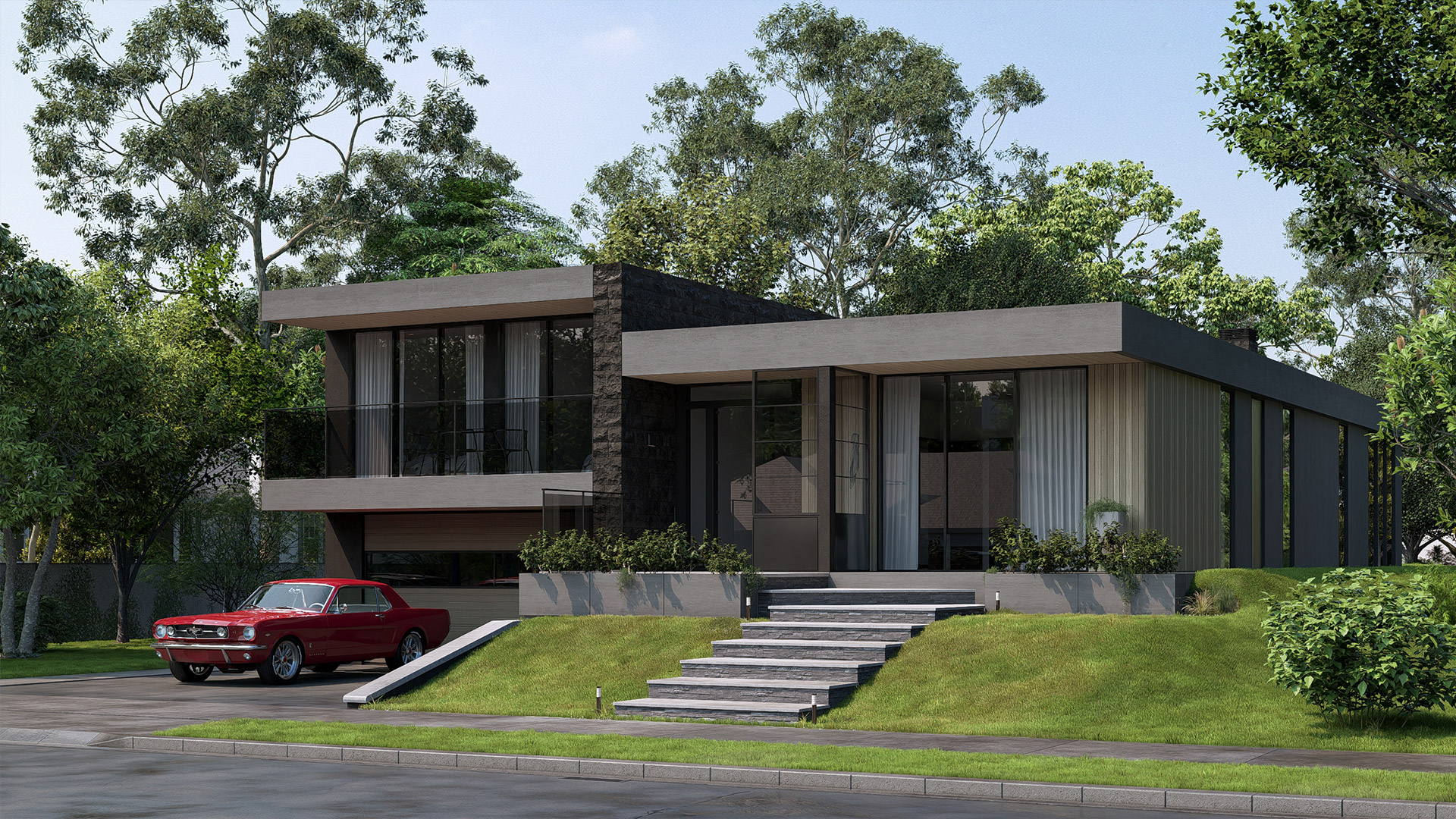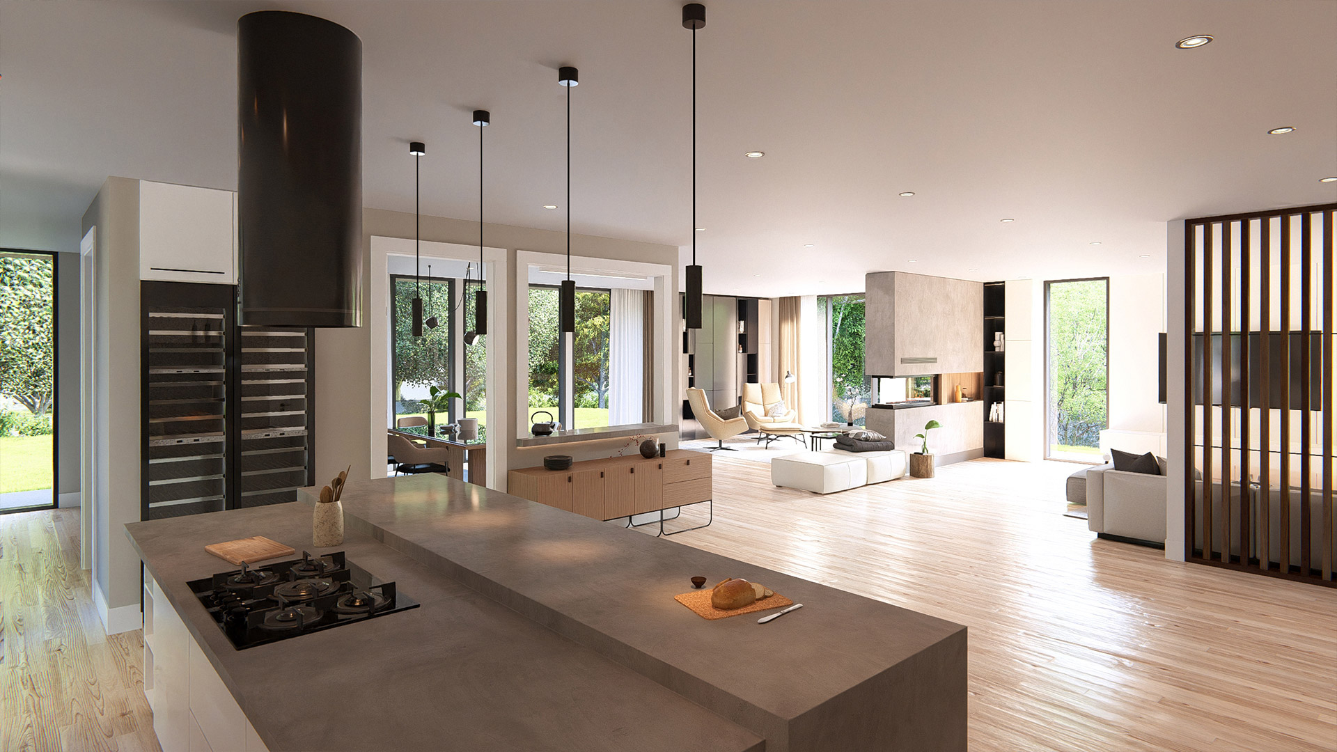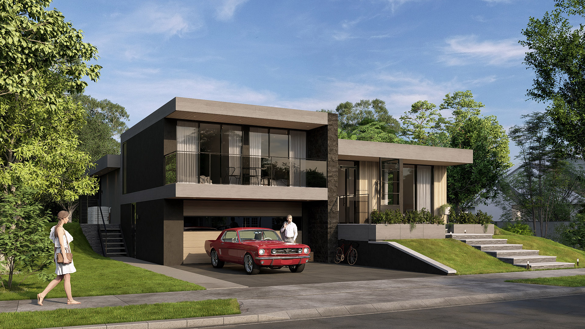 - Fluid split-level design with effortless indoor–outdoor integration